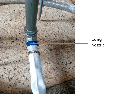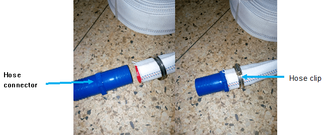 Bring one end of the next delivery hose and insert it on the 2nd end of the hose connector in the previous step. Tighten with a hose clip.