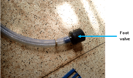 Insert the foot valve in the other end of the suction pipe and tighten using an orbit clamp.